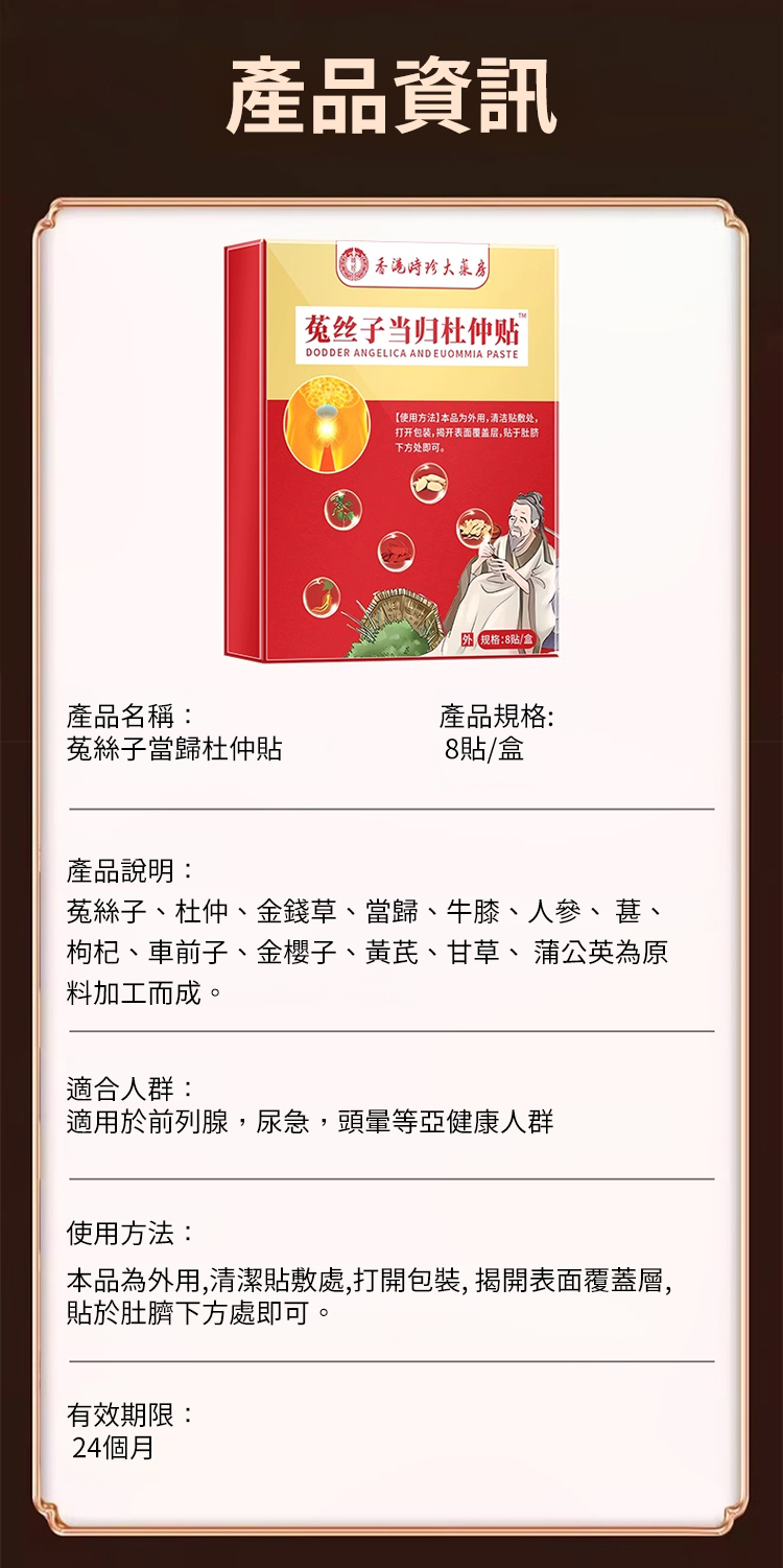香港時珍大藥局菟絲當歸杜仲貼